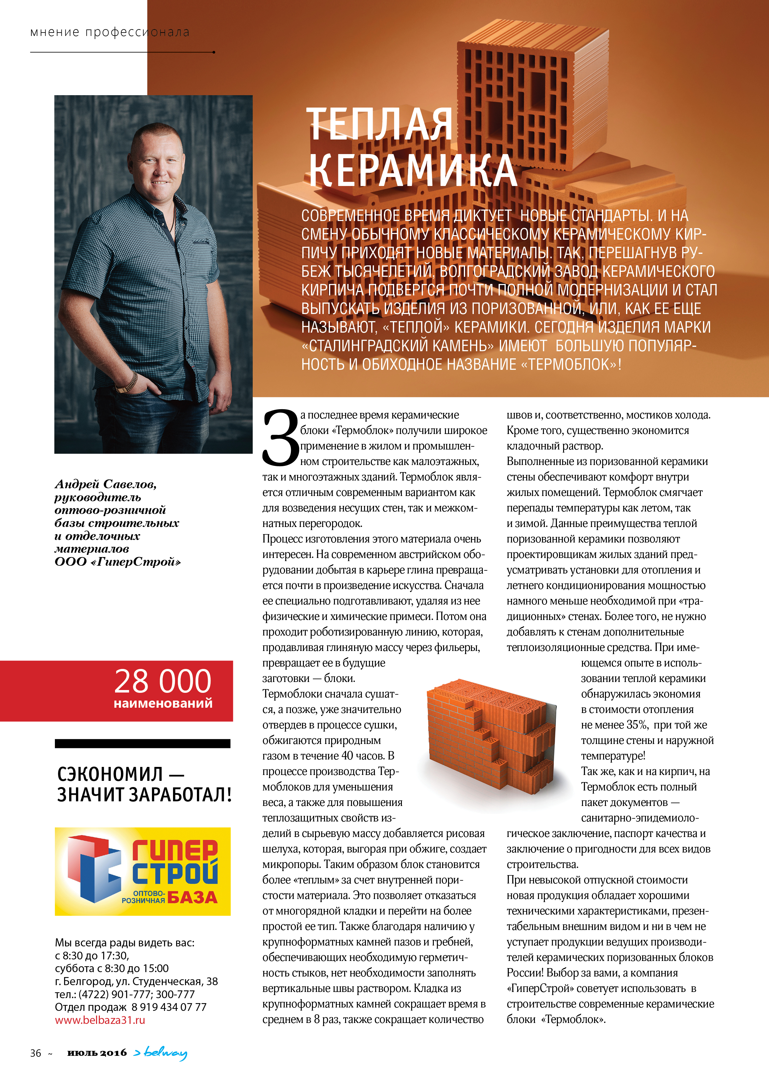 Современное время диктует новые стандарты. и на смену обычному классическому керамическому кирпичу приходят новые материалы. Так, перешагнув рубеж тысячелетий, Волгоградский завод керамического кирпича подвергся почти полной модернизации и стал выпускать изделия из поризованной, или, как ее еще называют, «теплой» керамики. Сегодня изделия марки «Сталинградский камень» имеют большую популярность и обиходное название «Термоблок»!